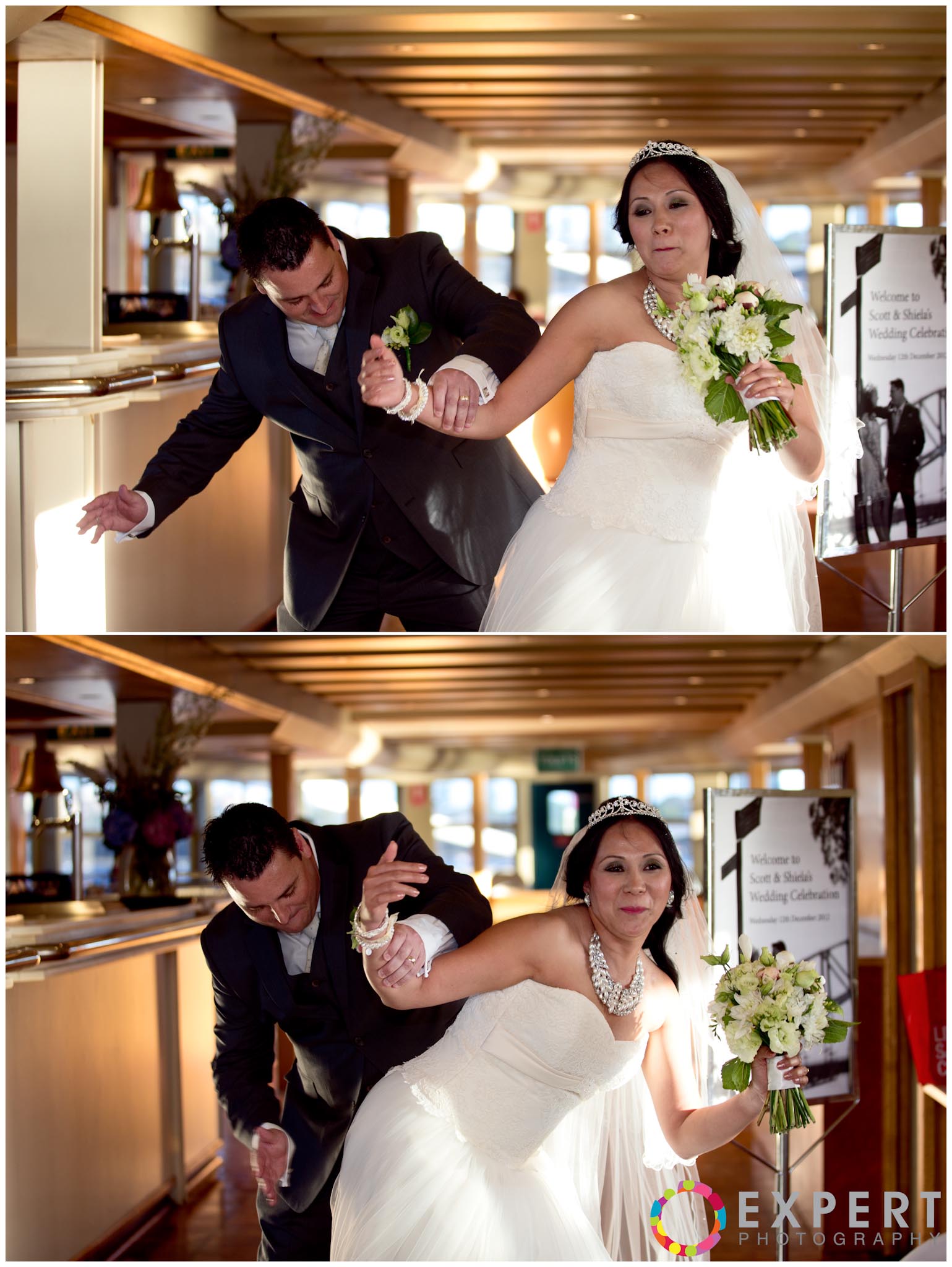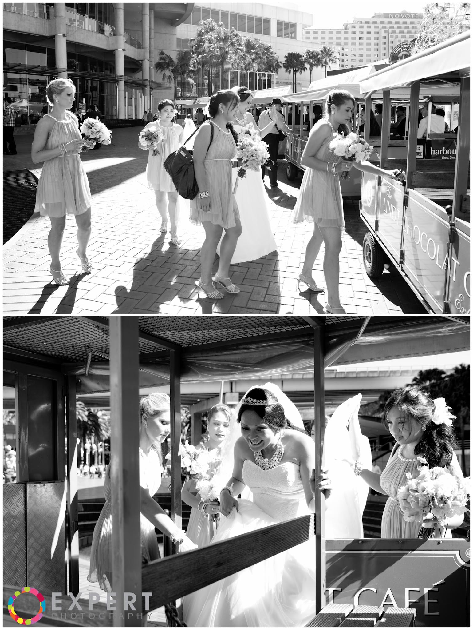 The couple organised a train ride for all guests to the wharf where the Captain Cook Cruises ship is moored.