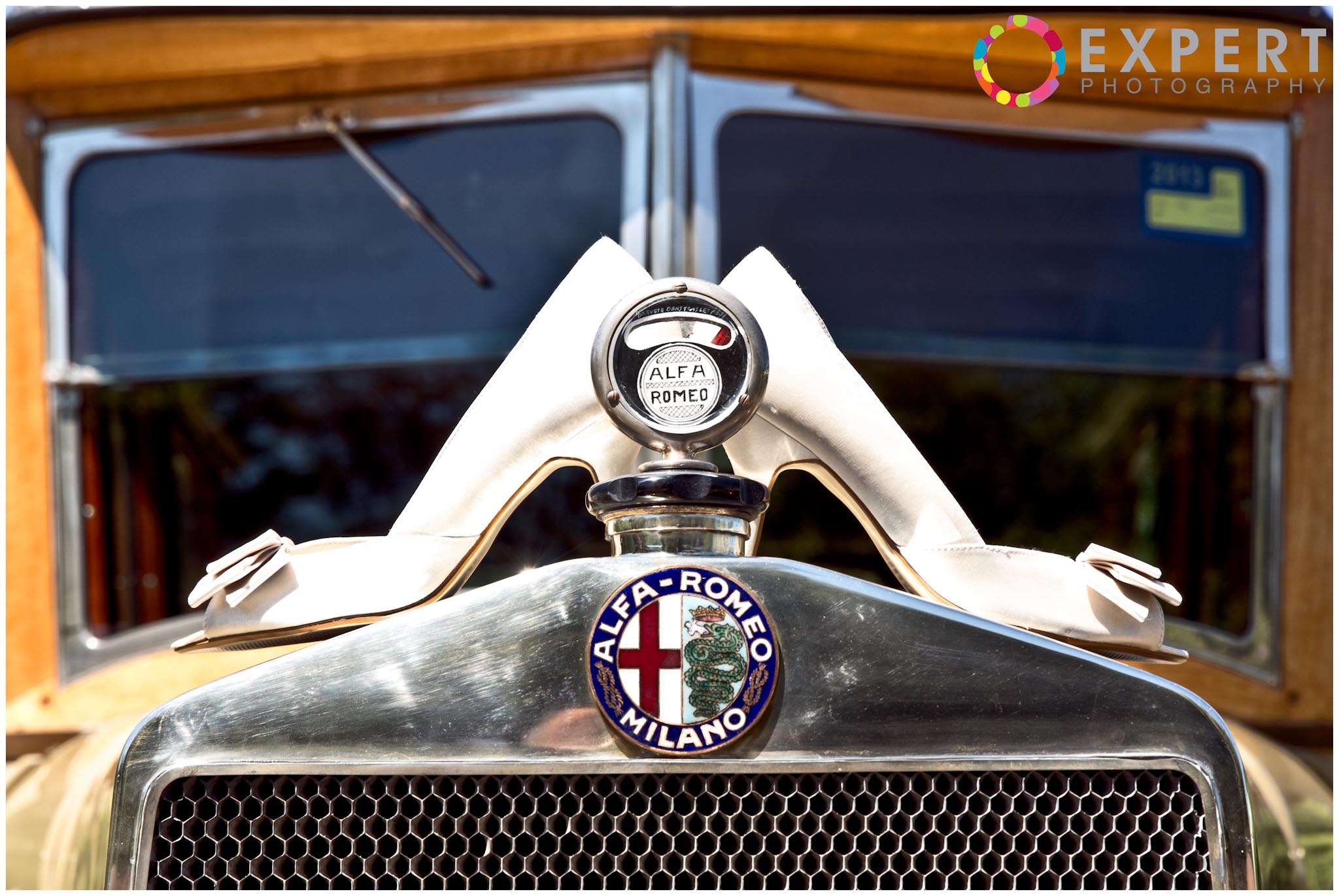 Natalie’s shoe on top of the bridal car – an 1929 Alfa Romeo vintage car. This car is the labour of love of Natalie’s grandfather. It took him almost 40 years to restore it.
