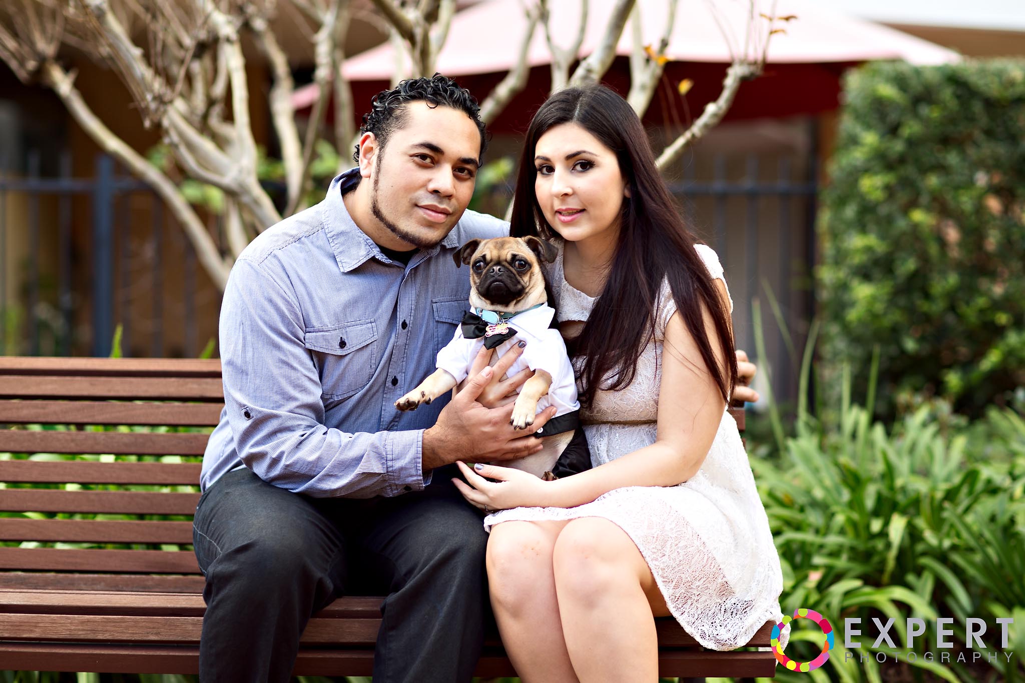 They got engaged at the very memorable date of 12th of the 12th 2012 (12/12/12)! They just came home from dinner. They decided to take their then 4 month old puppy Pugsley (shown in the photos) at the dog park behind their place. Tano then picked-up Pugsley, got down on his knee, read a poem that he had personally written, and then proposed!