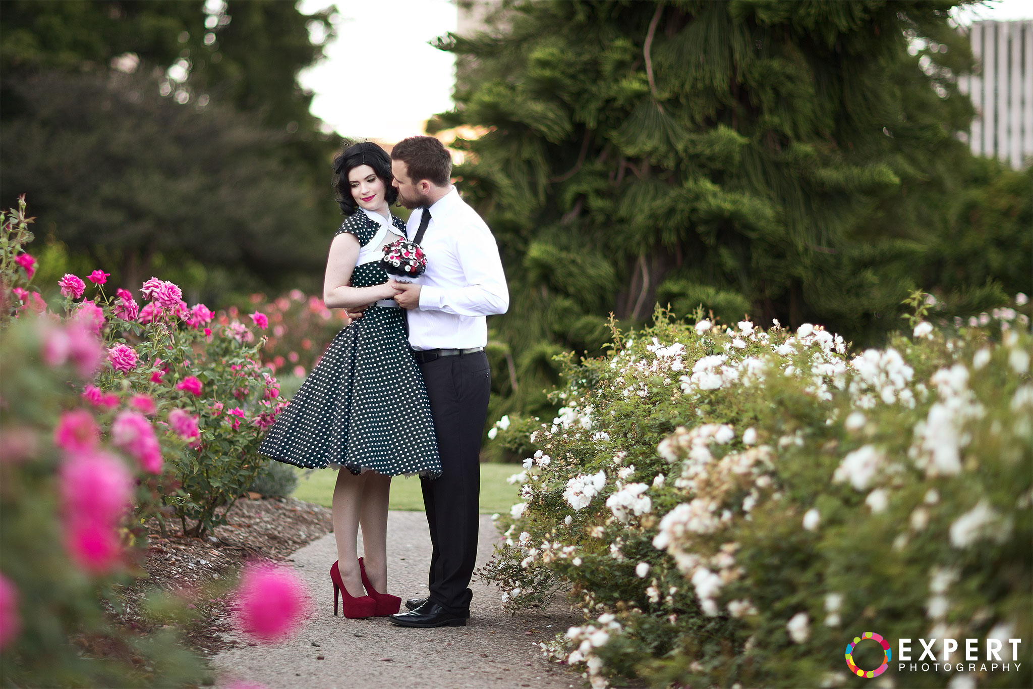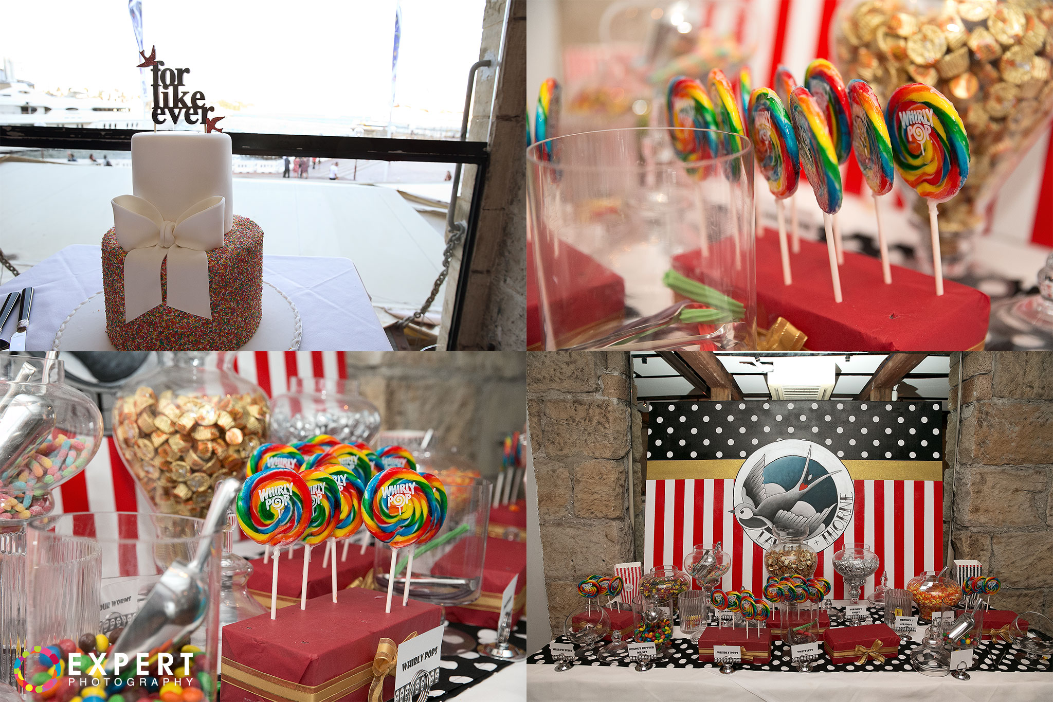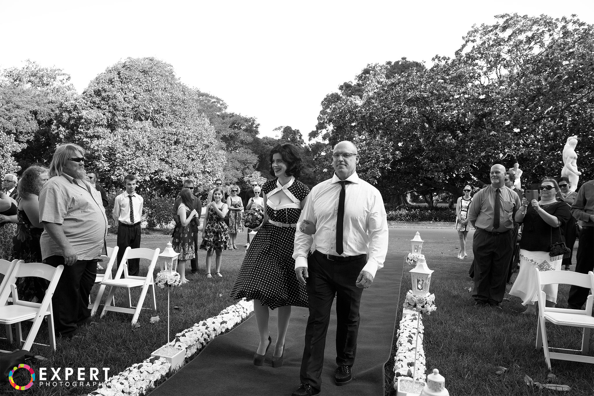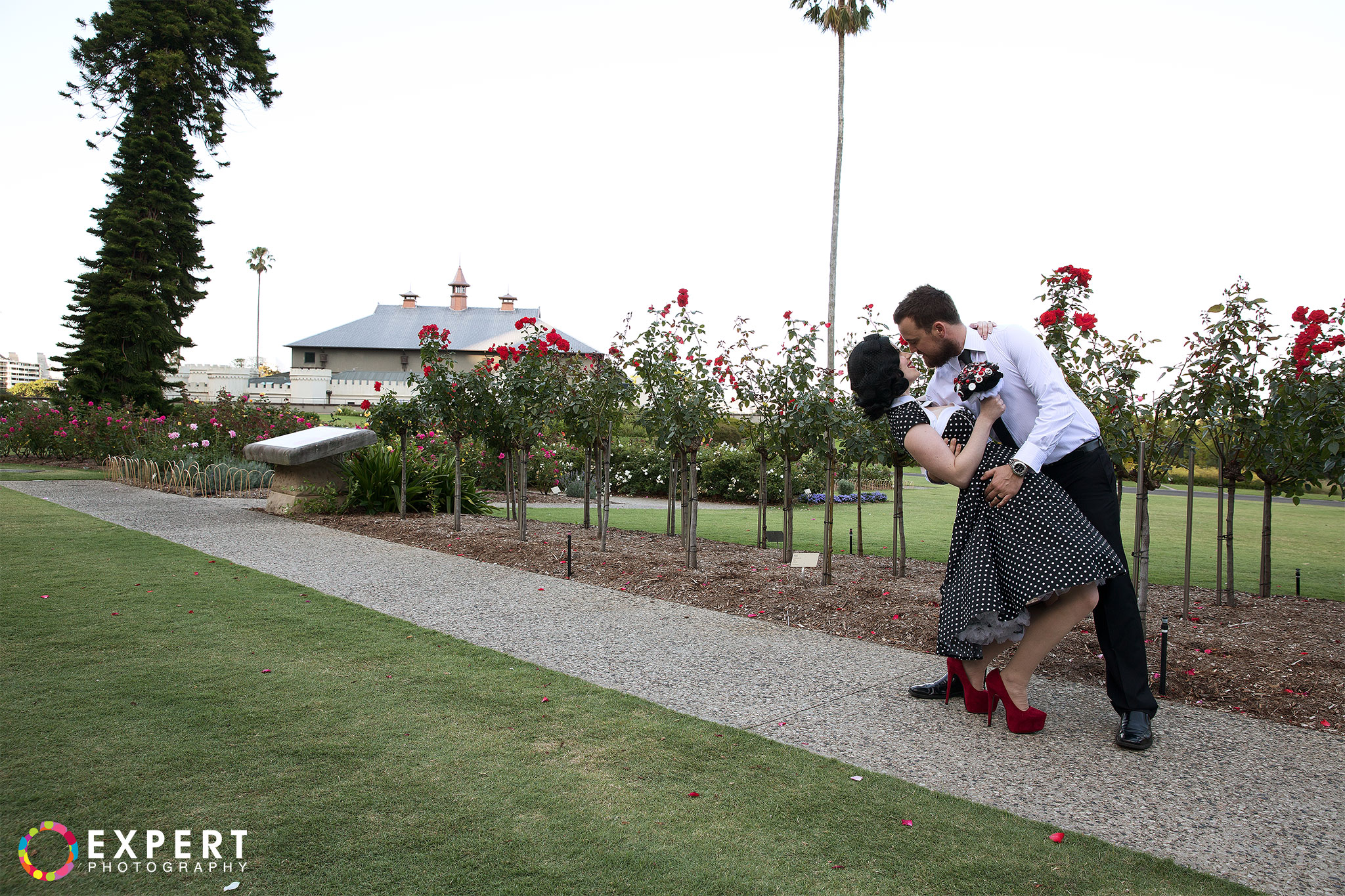 Lauren and Thorne had decided that their wedding would be something unique. The bride’s (and bridesmaids) dress has a 50’s (or 60’s?) theme to it. From the bouquet to the reception decor, everything is uniquely different. Not that I’m complaining though as it is both non-traditional but so beautiful. Even the QT Hotel were Lauren was preparing is themed like a classic movie/theatre which just blends well with her look.