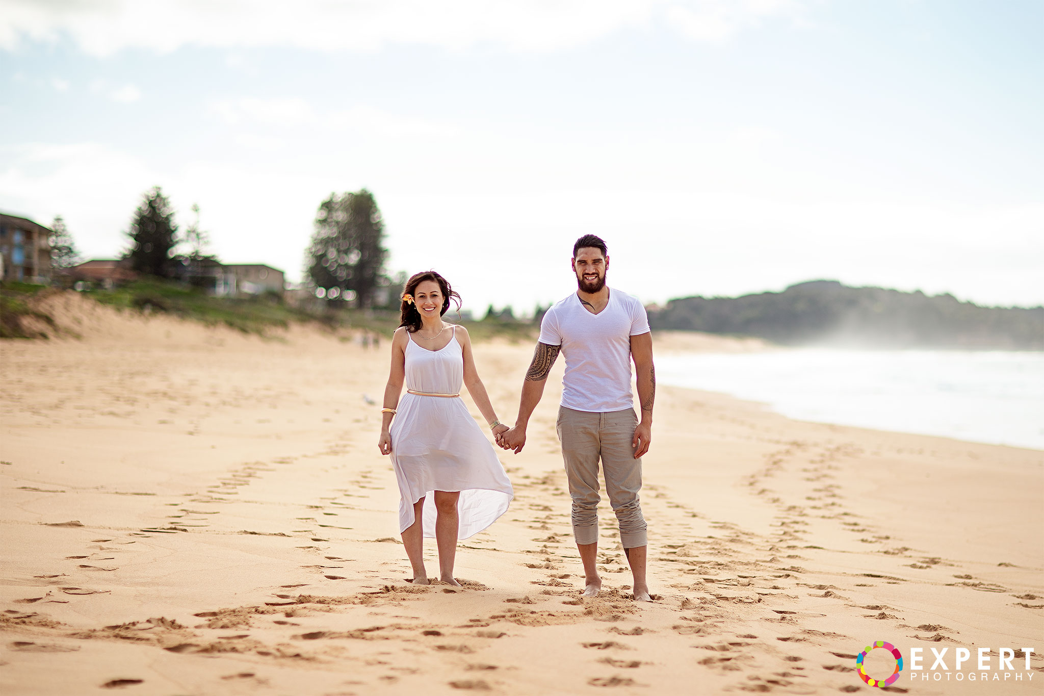 This is my first time to visit Narrabeen Beach to shoot the pre-wedding of Estelle and Jesses. The beach is situated north of Sydney. It was a beautiful and surprisingly warm winter day. You can see that our couple are wearing summer clothes! Because it is winter, there’s hardly anybody on the beach. It makes for a pleasant and easy photo session.