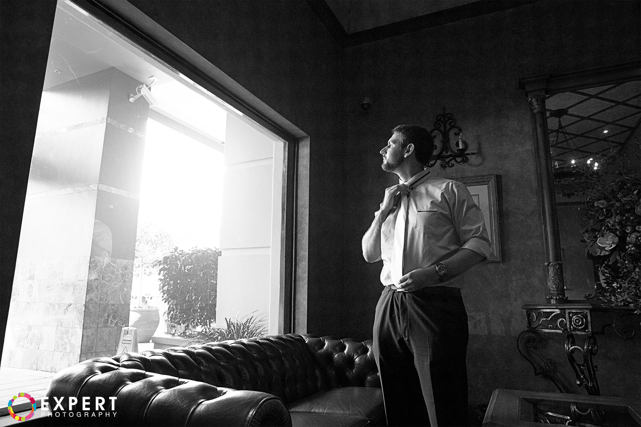 I started the day at a apartment near the Domain in the city. This is our couple’s current residence. It is very close to the Naval base where Barry works. This is the place where I shot their gettng-ready and also where the ceremony was held. The apartment itself has a very nice lobby with classic furnishings and dramatic natural lighting. I certainly enjoyed shooting there.