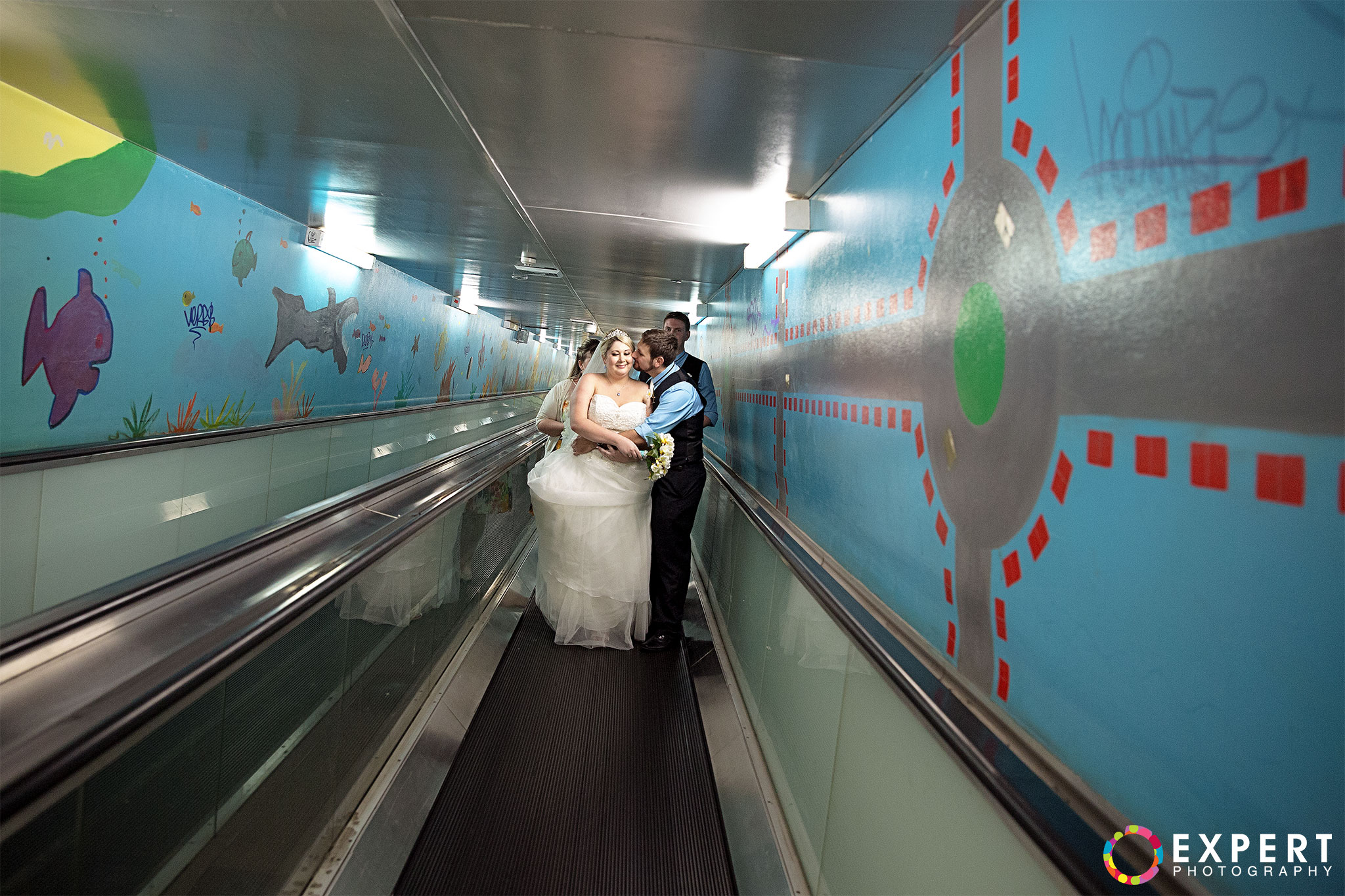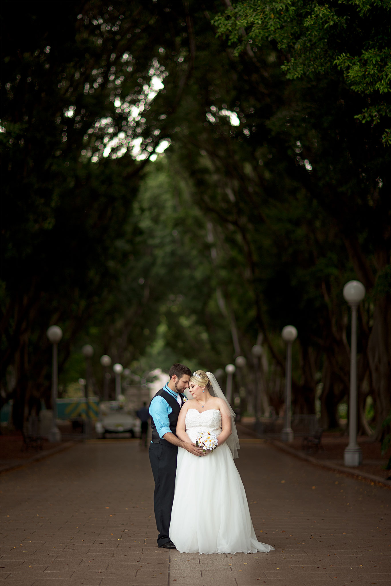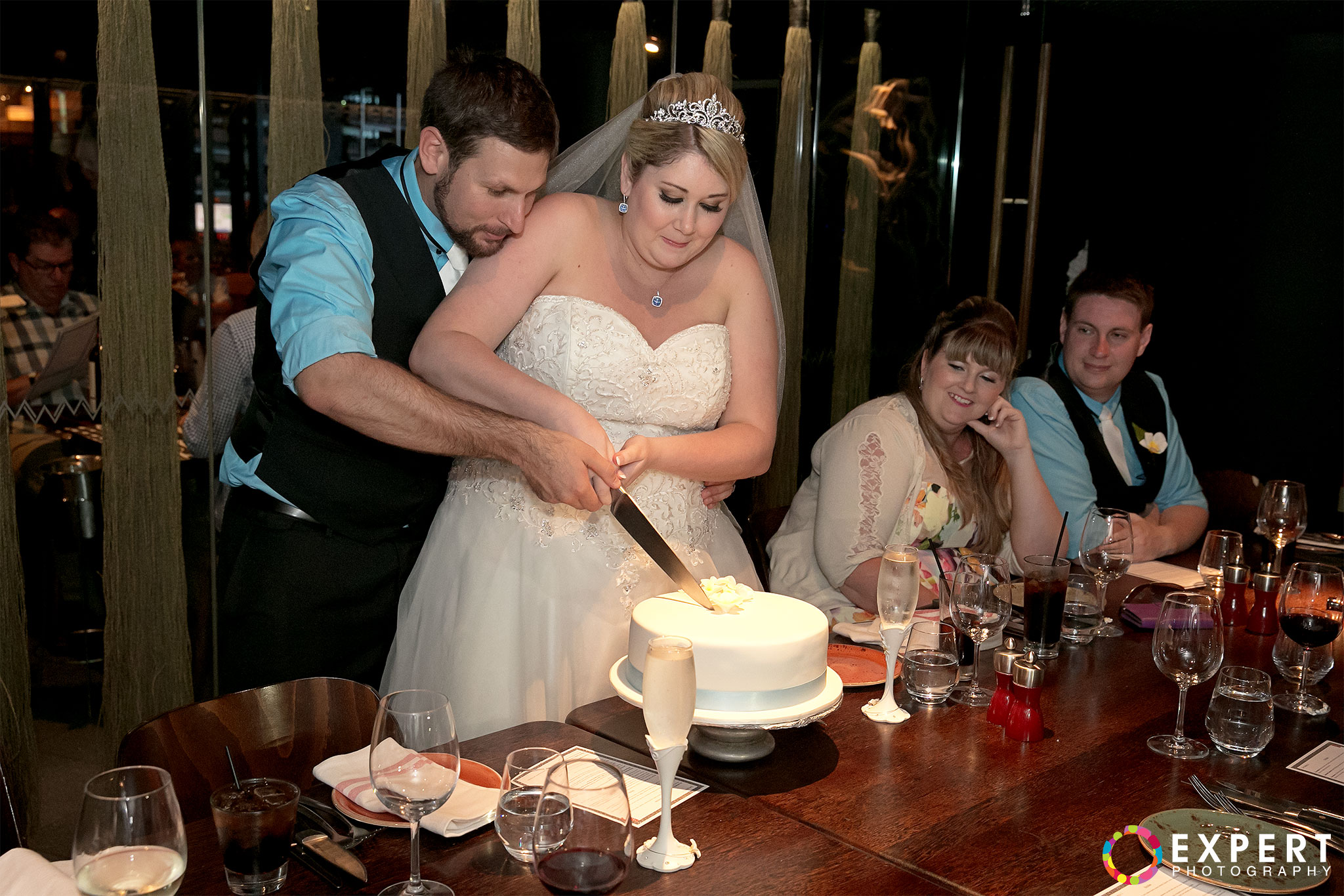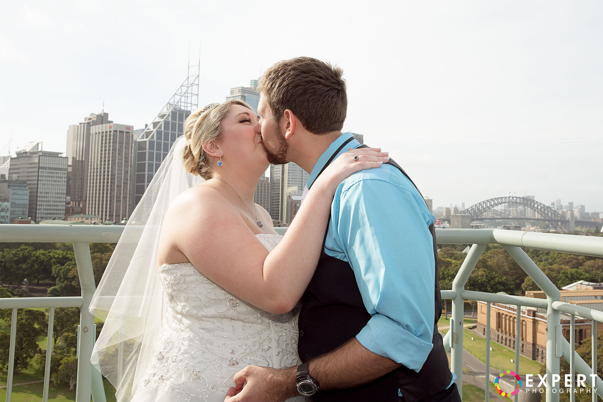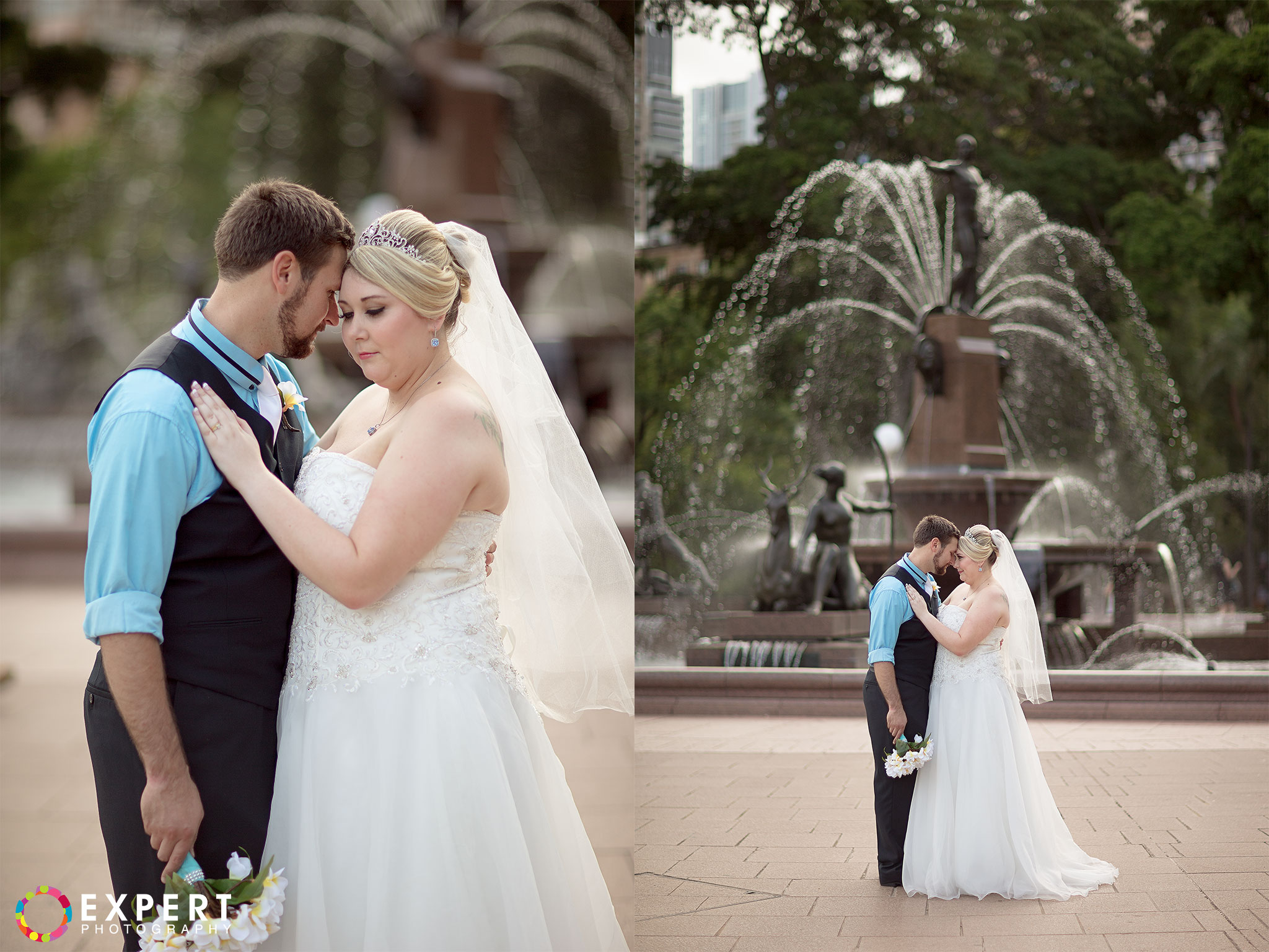 The ceremony was a nice and simple affair attended only by their immediate family and friends. The rooftop of the building where the wedding took place had a very nice view of Sydney Harbour and the CBD. After the ceremony, we trekked to Hyde Park via the Domain Express Moving Walkway for our location shoot. The original plan was to walk to Darling harbour for the reception at The Meat Wine and Co. But with Tara on a wedding dress wearing heels, it’s kinda difficult. So it was decided that Tara, her bridesmaid, and me will just take a cab. Barry and his best man will return to their apartment to get their car and other items for the reception. It’s really funny seeing a bride on the street hailing a taxi. You can see that the taxi driver was amused as how often do you get an actual bride as a passenger!
