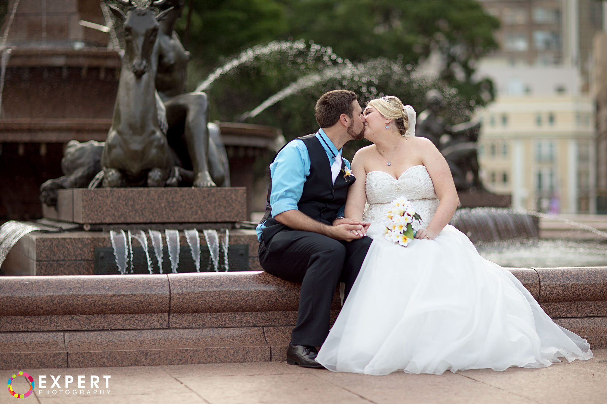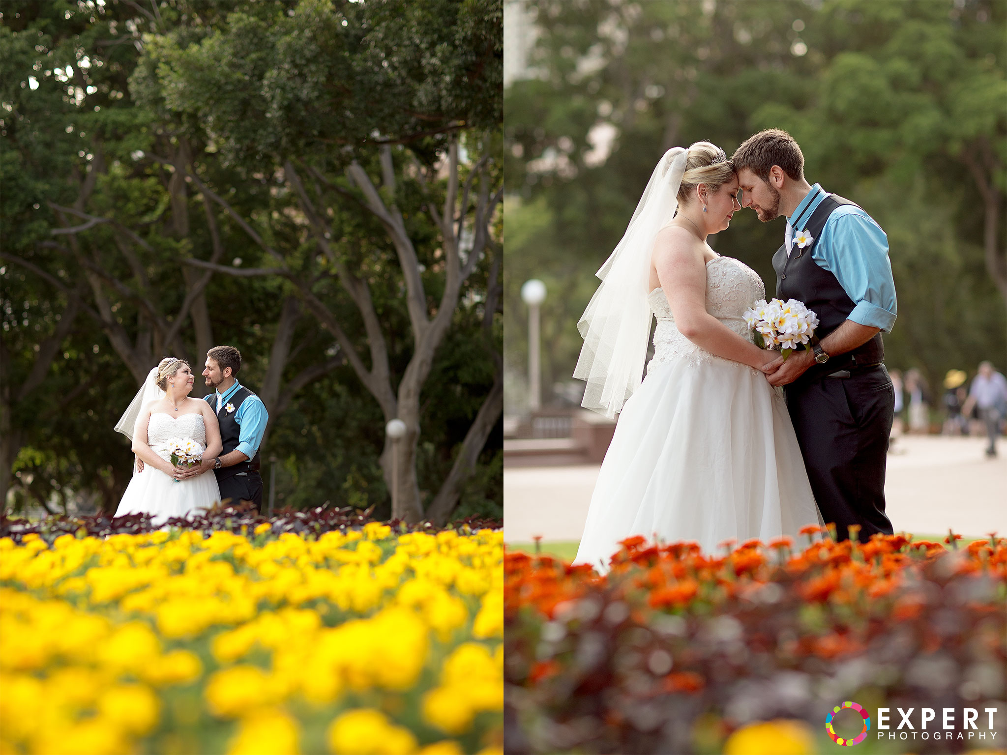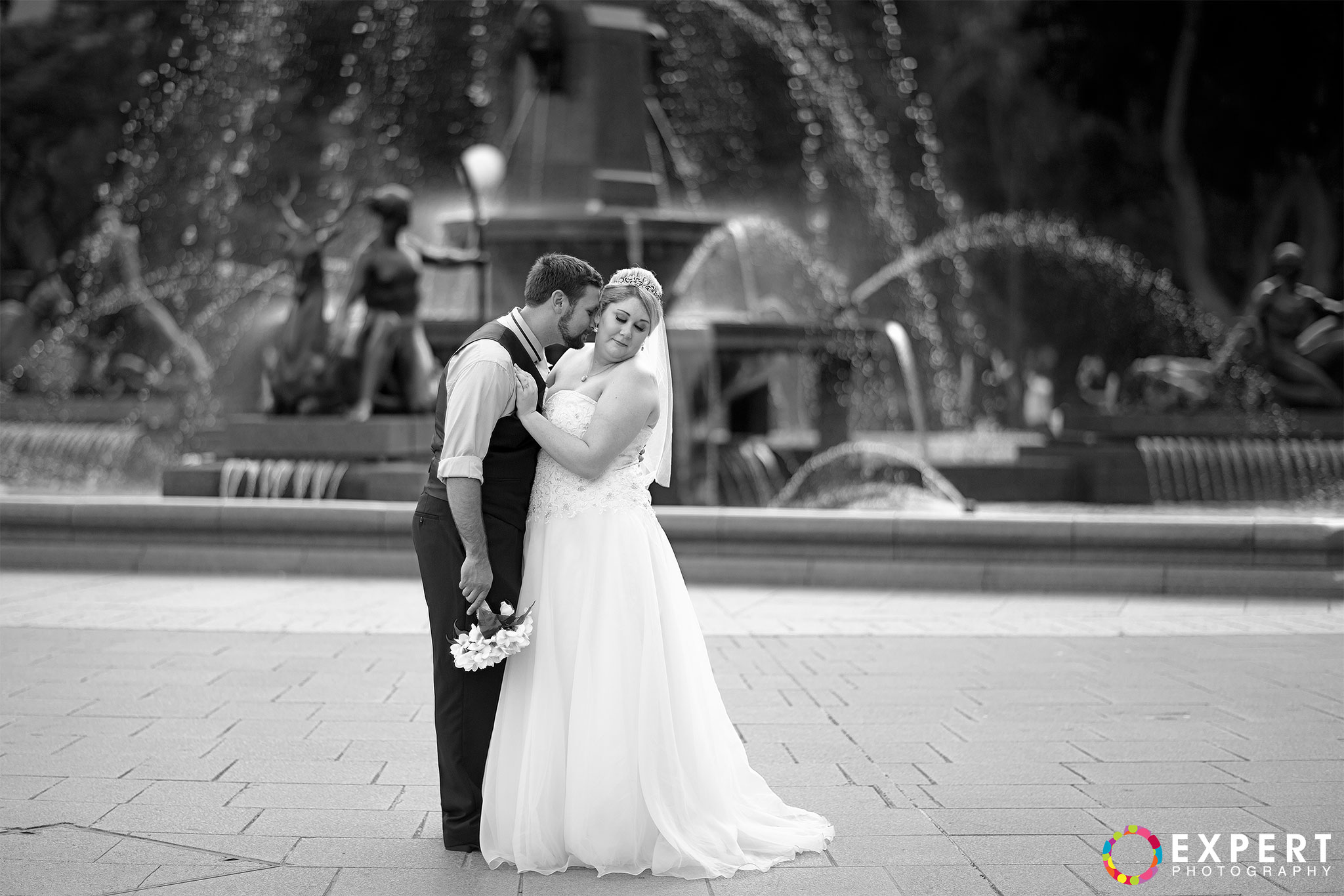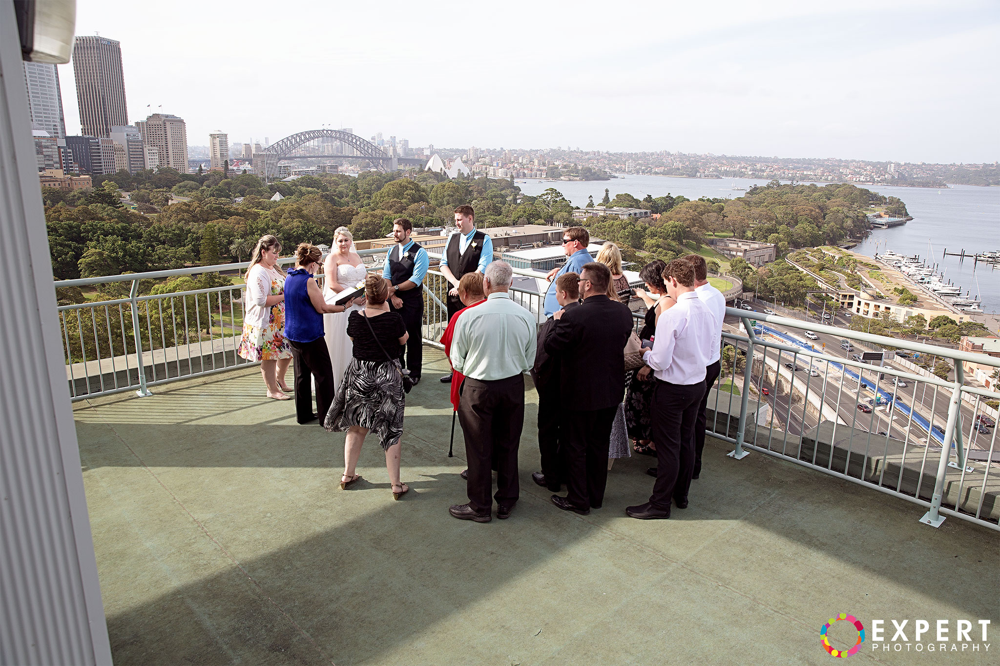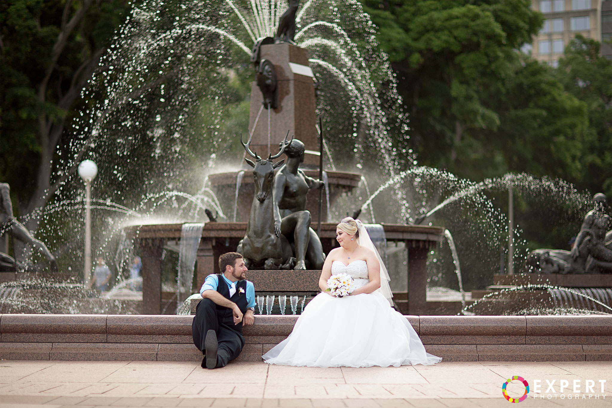 The ceremony was a nice and simple affair attended only by their immediate family and friends. The rooftop of the building where the wedding took place had a very nice view of Sydney Harbour and the CBD. After the ceremony, we trekked to Hyde Park via the Domain Express Moving Walkway for our location shoot. The original plan was to walk to Darling harbour for the reception at The Meat Wine and Co. But with Tara on a wedding dress wearing heels, it’s kinda difficult. So it was decided that Tara, her bridesmaid, and me will just take a cab. Barry and his best man will return to their apartment to get their car and other items for the reception. It’s really funny seeing a bride on the street hailing a taxi. You can see that the taxi driver was amused as how often do you get an actual bride as a passenger!