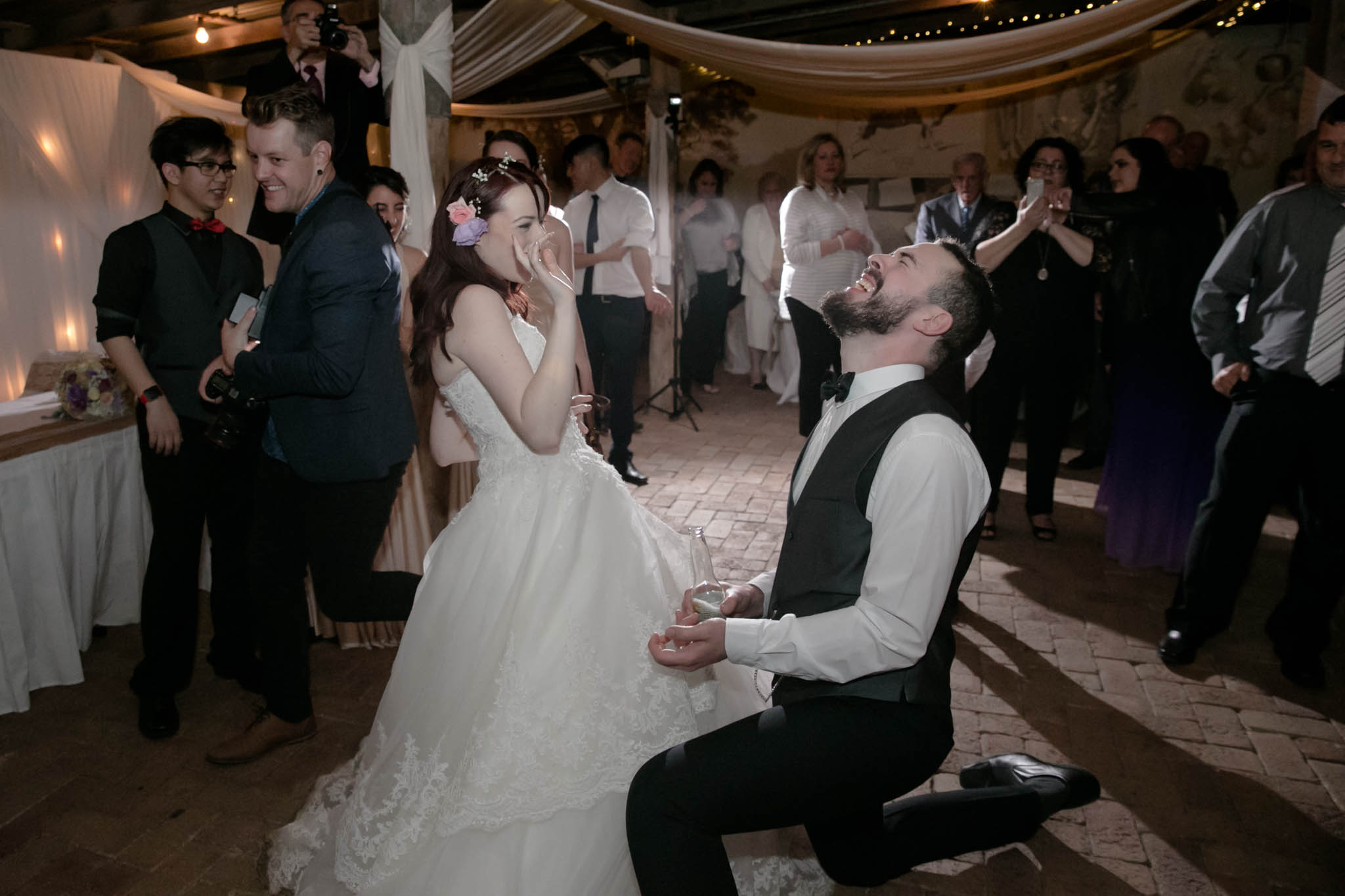 “Are you serious?” — Emily said when Aaron proposed to her on a snowy day just before sunset while on holiday in Rothenburg ob der Tauber (a well preserved medieval town in Germany). She wanted to take photos of the sights. After she snapped a photo of a bird house, she turned around and there was Aaron, on one knee with a ring. She thought it was perfect!