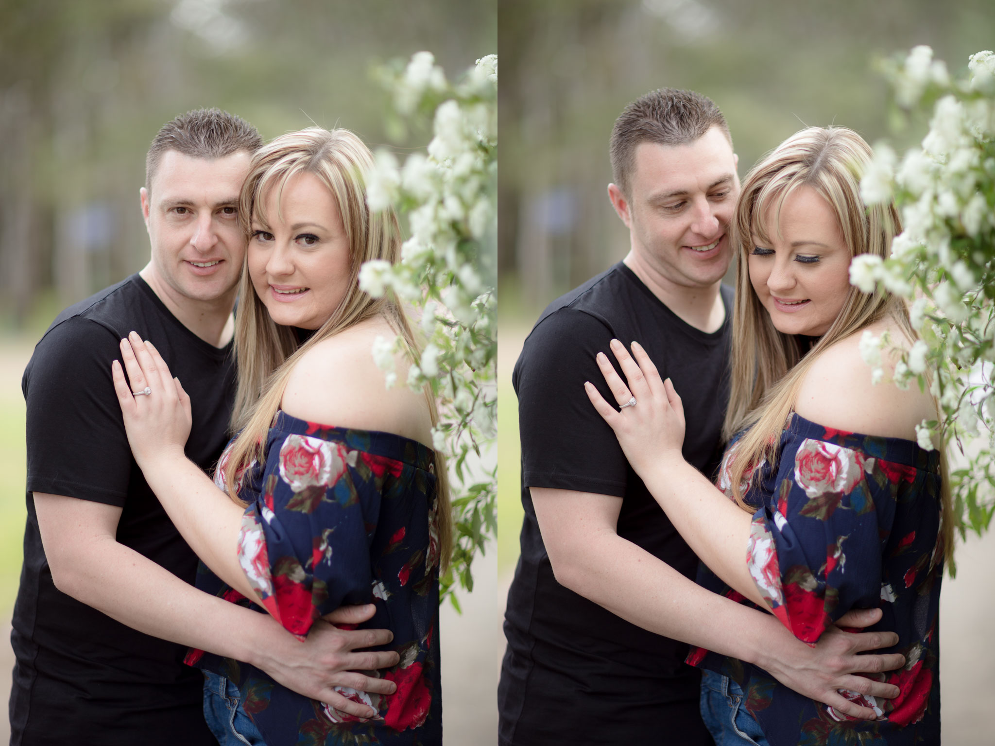 They picked the ring out together. Adam made Emily wait a few months before popping the question thinking it would be more of a surprise not knowing when it was coming but when Adam planned for them to go out Emily knew it was coming as it was always Emily thinking of ideas to do on a free Saturday night. On October 11th 2014 Adam took Emily out to eat & took her to the beach (Emily always hinted she wanted it somewhere quiet & away from people). He had the ring in the wrong pocket so he kept asking Emily to move, being stubborn she didn’t move. Adam scared Emily by saying there was something in the tall grass making her jump up & when she turned around Adam was on his knee but Emily was still too worried that there was actually something in the grass!